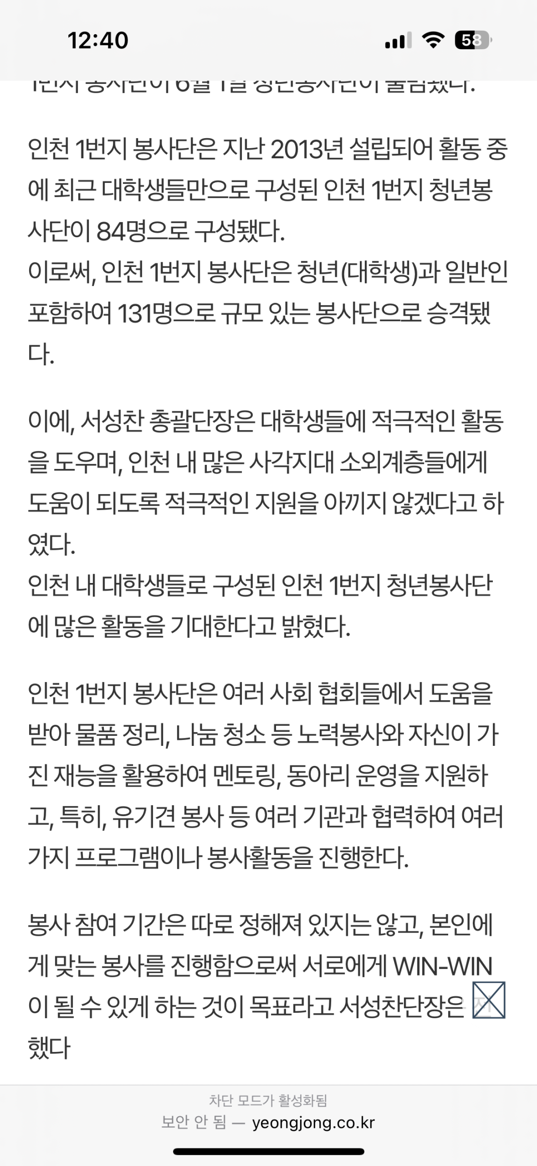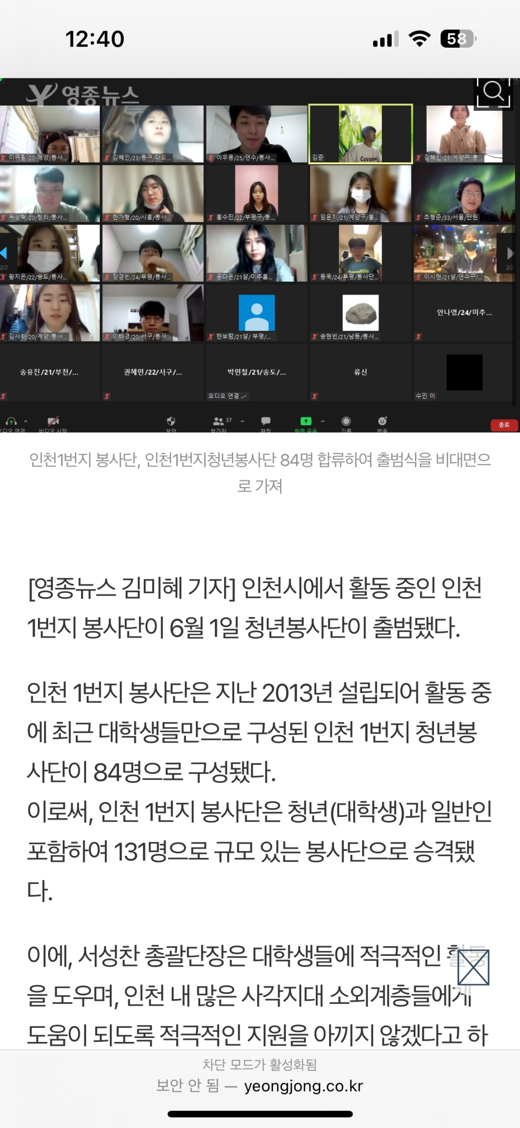 인천 1번지 청년 봉사단 언론보도