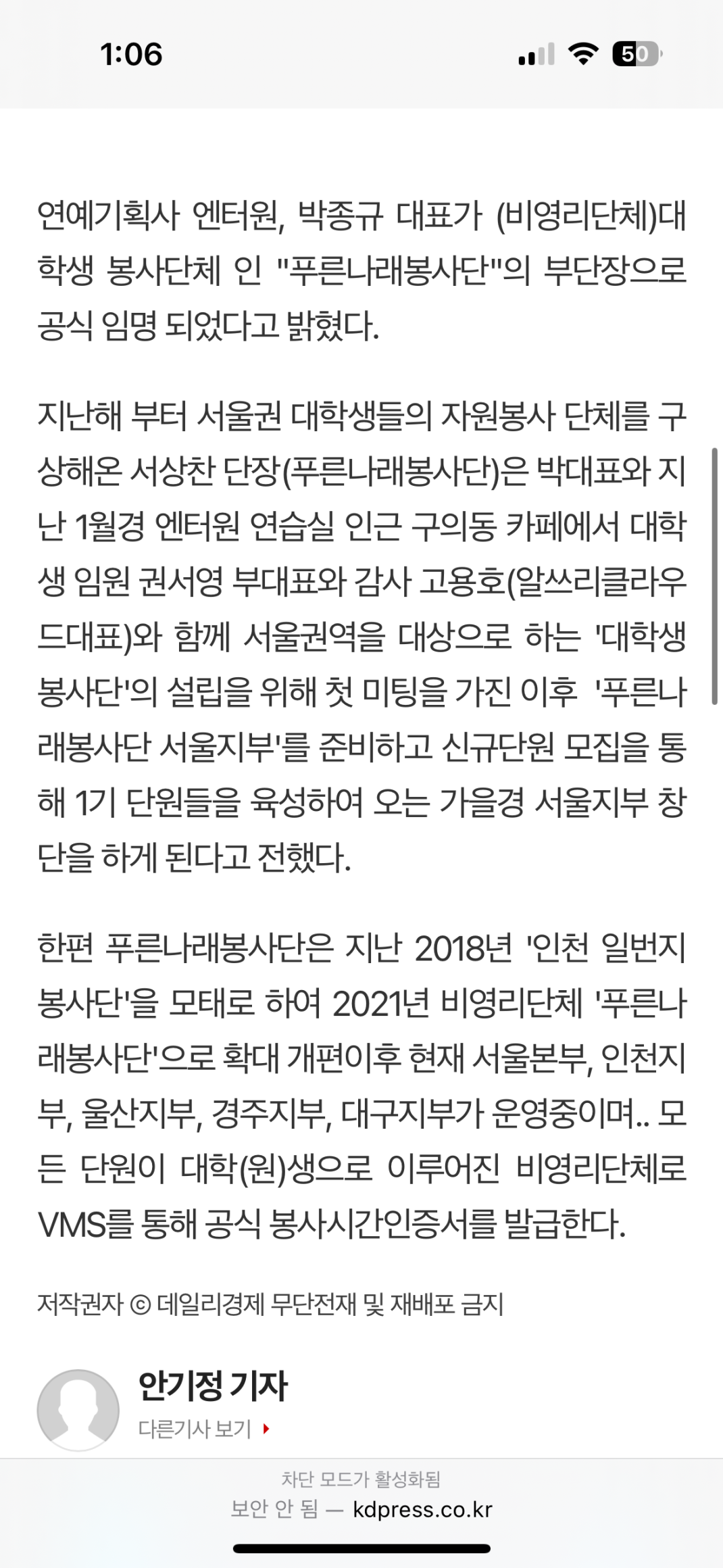 푸른나래봉사단 언론보도